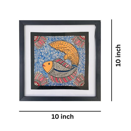 Madhubani Handmade Painting | Jadui Meen | 10inch X 10inch with Frame
