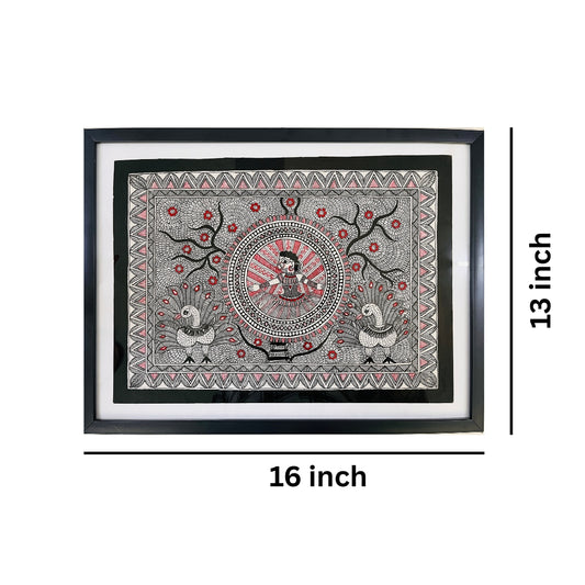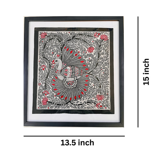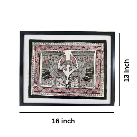 Madhubani Painting| dve Mayūra | 13inch X 16inch with Frame