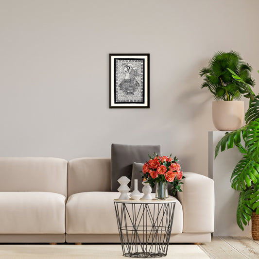Madhubani Handcrafted Painting | Girl Carry Matka on her Head | 16inch x 13inch with Frame
