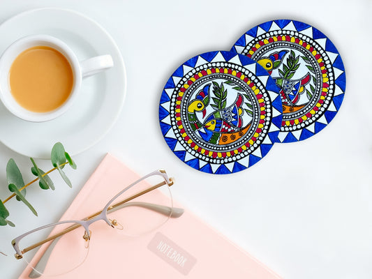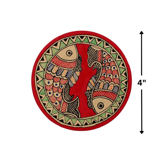 Madhubani Hand Painted Fish Coasters | Set of 4 | Red | Jal Ki Rani
