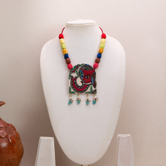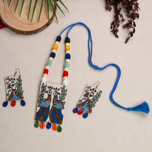 Madhubani Hand-Painted Peacock Necklace Set with Earrings
