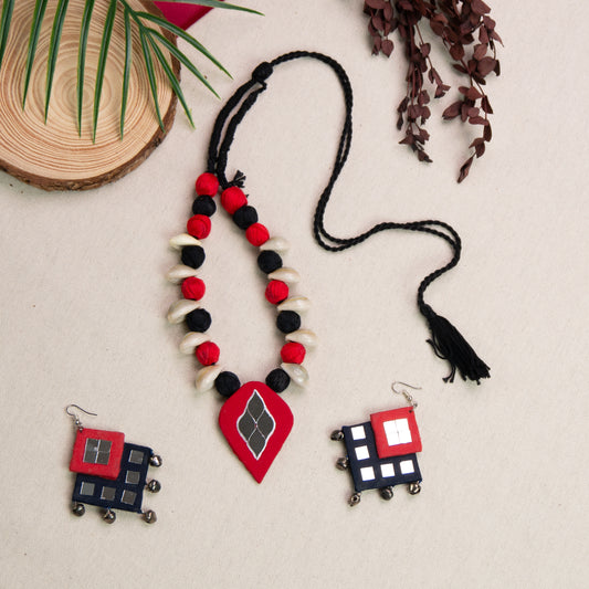 Tejasvi Handmade Fabric Jewellery Set - Adorn with Mirror & Kowrie
