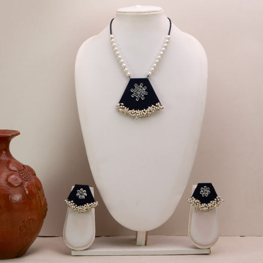Tarang Fabric Square Necklace Earrings Jewellery Set for Women (Blue)