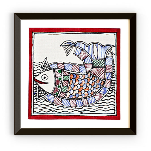 Madhubani Hand Made Painting | Samudri Meen | 10inch X 10inch with Frame