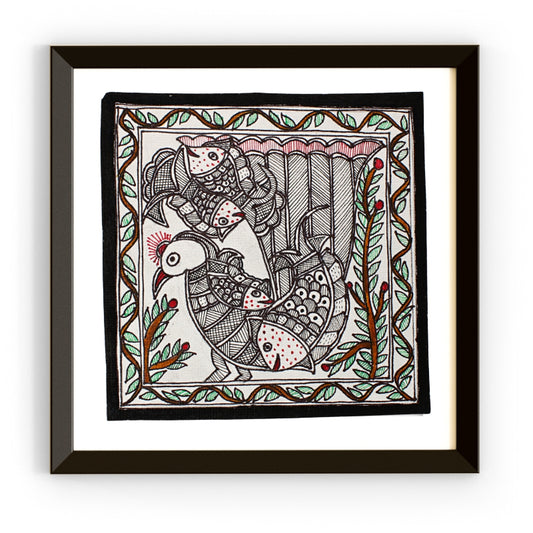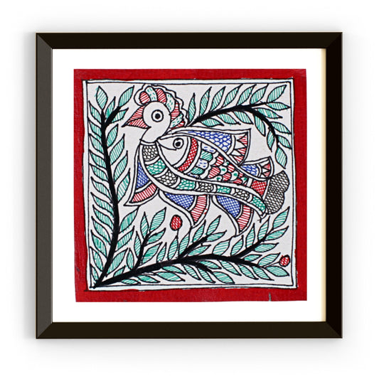 Madhubani Painting | Mayurmeen | 10inch X 10inch with Frame