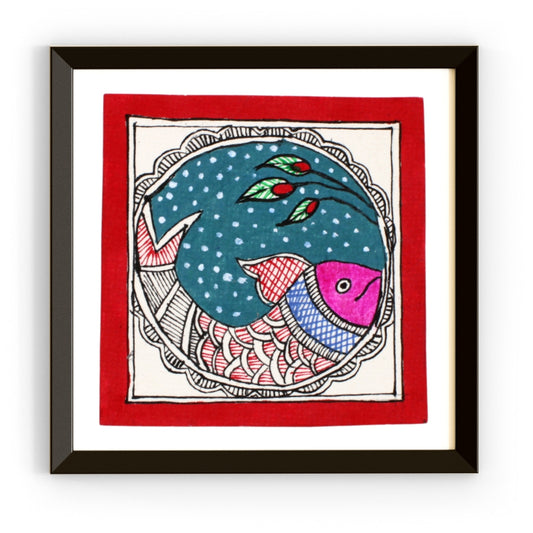 Madhubani Handmade Painting | Jadui Meen | 10inch X 10inch with Frame