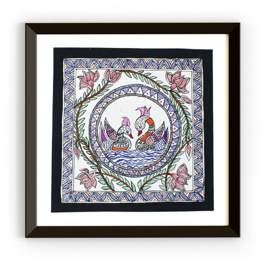 Madhubani Hand Made Painting | Yugul Hans | 10inch X 10inch with Frame