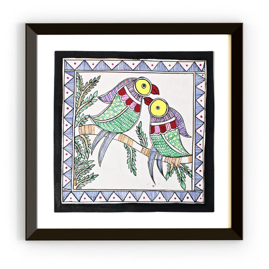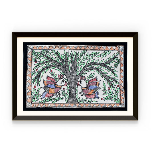 Madhubani Painting| dve Mayūra | 13inch X 16inch with Frame