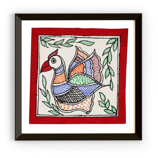 Madhubani Hand Made Painting | Bird | 6inch X 6inch with Frame