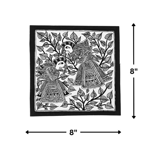 Madhubani Hand Made Painting | Mayur Vartalap | 10inch X 10inch with Frame