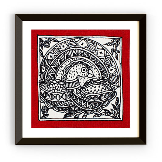 Madhubani Hand Made Painting | Mayuri | 6inch X 6inch with Frame