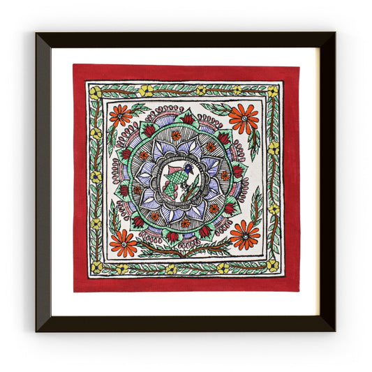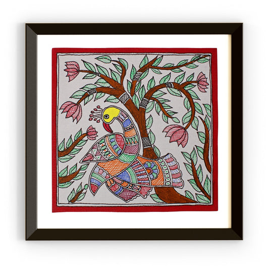Madhubani Hand Made Painting | Mayur Pushp | 10inch X 10inch with Frame