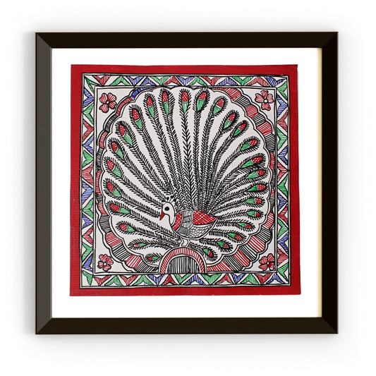 Madhubani Hand Made Painting | Mayur Utsav | 10inch X 10inch with Frame