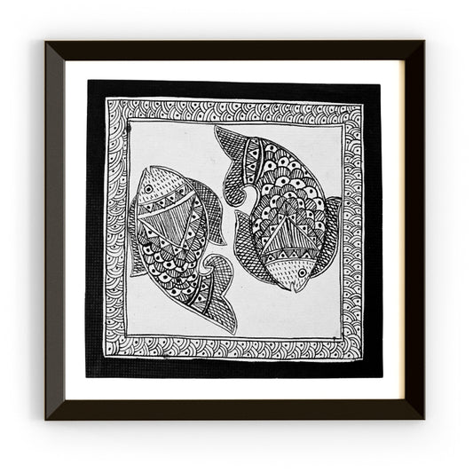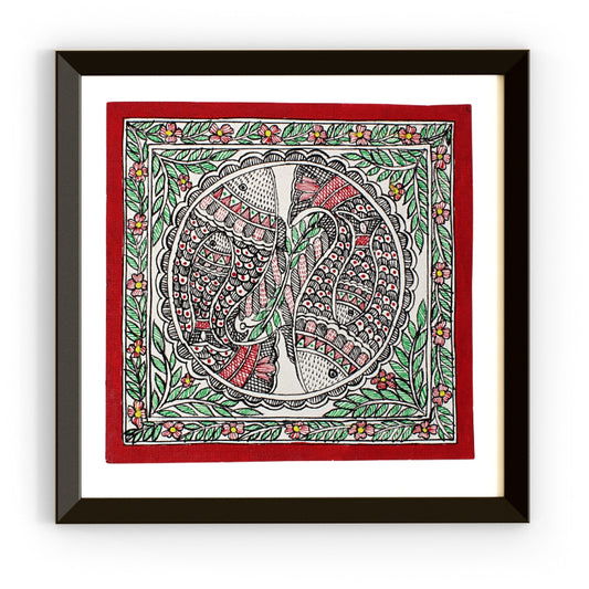 Madhubani Hand Made Painting | Mayur Meen | 10inch X 10inch with Frame