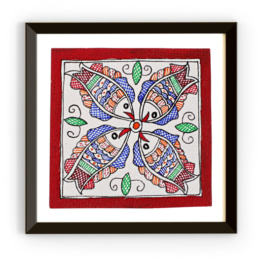 Madhubani Hand Made Painting | Meen Nritya | 10inch X 10inch with Frame