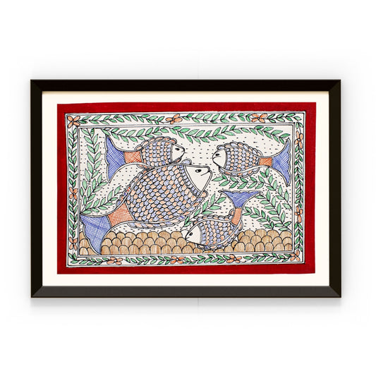 Madhubani Hand Made Painting | Meen Bhogh | 10inch X 13inch with Frame