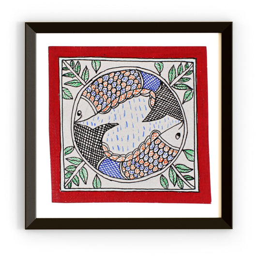 Madhubani Hand Made Painting | Meen Raas | 6inch X 6inch with Frame