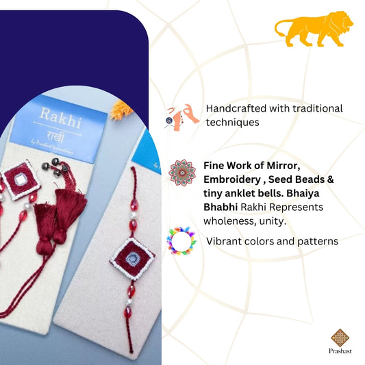 Lumba Rakhi Set For Bhaiya Bhabhi | Premium Cotton Threads, Beads, Mirror work