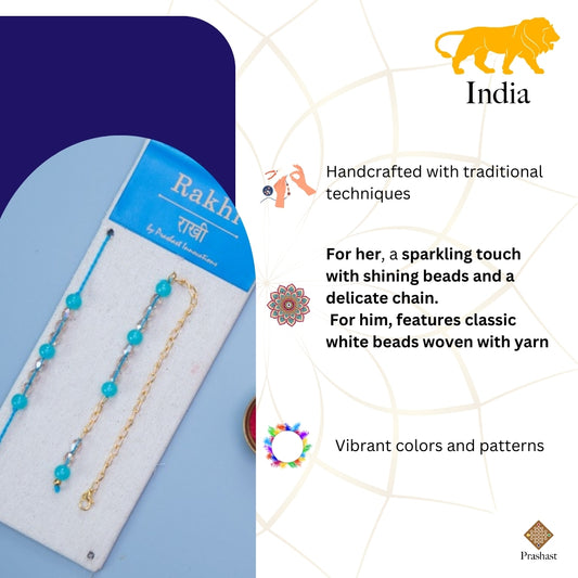 Lumba Rakhi For Bhaiya Bhabhi | Blue Beads and White Crystals on Chain