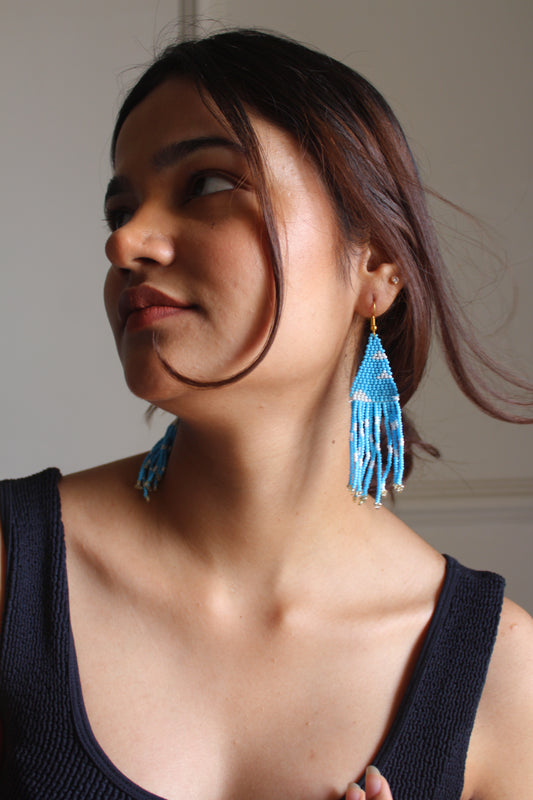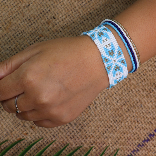 Blue Daisy Bracelet | Handmade Blue Beaded Bracelet for Women