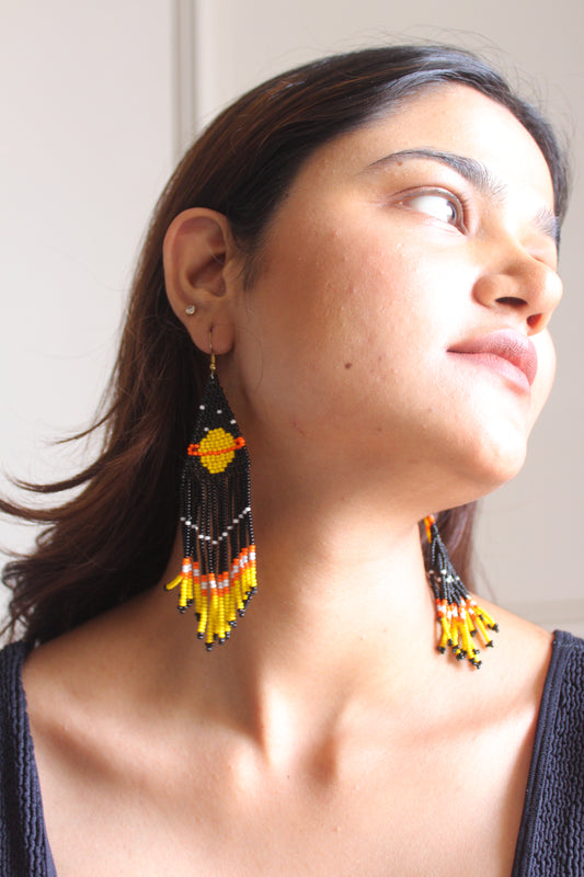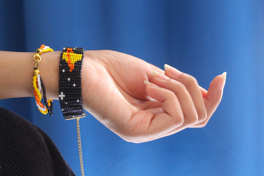 Sassy Saturn | Handmade Black Beaded Bracelet For Women