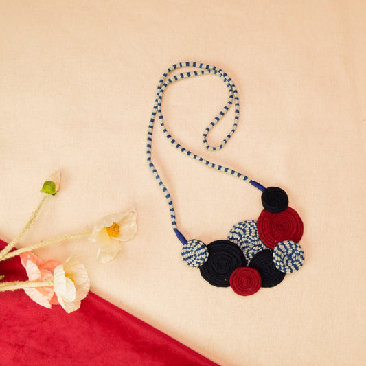 Vrinda Fabric Spiral Necklace Earrings Jewellery Set for Women (Blue & Red)