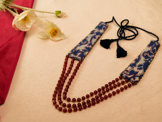Raag Fabric Beaded Necklace Earrings Jewellery Set for Women (Blue & Red)