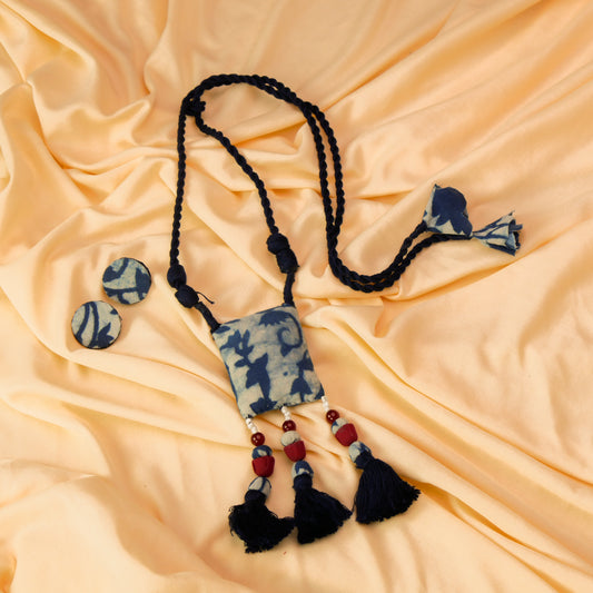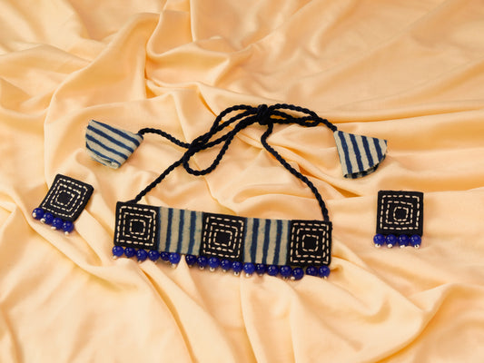 Tarang Fabric Square Necklace Earrings Jewellery Set for Women (Blue)