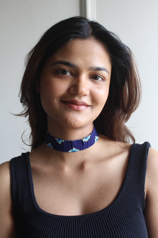Sunflower | Handmade Blue Beaded Choker Necklace