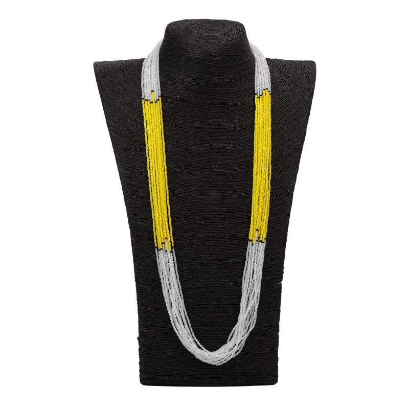 necklace is a brilliant mix of vibrant yellow and white, making it a standout piece.