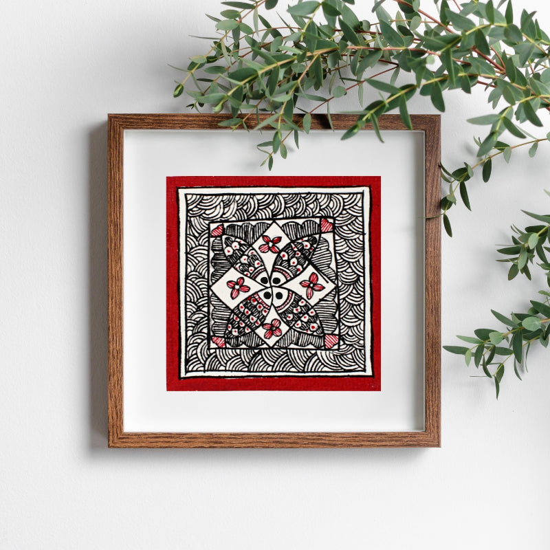 Madhubani Hand Made Painting | Kachni meen Nritya | 6inch X 6inch with Frame
