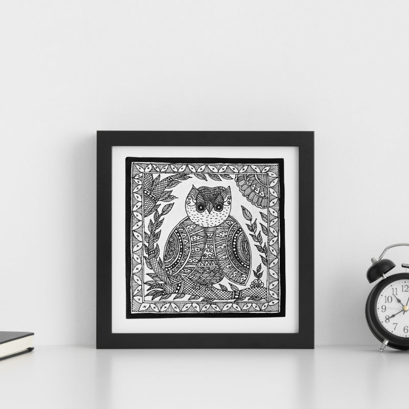 Madhubani Hand Made Painting | Kachni Uluk | 10inch X 10inch with Frame
