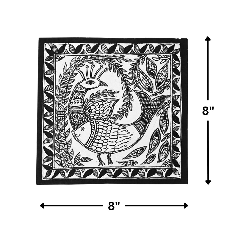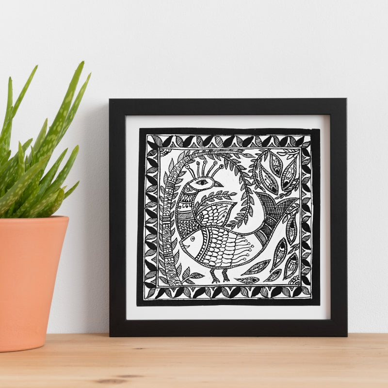 Madhubani Hand Made Painting | Mayur Meen | 10inch X 10inch with Frame
