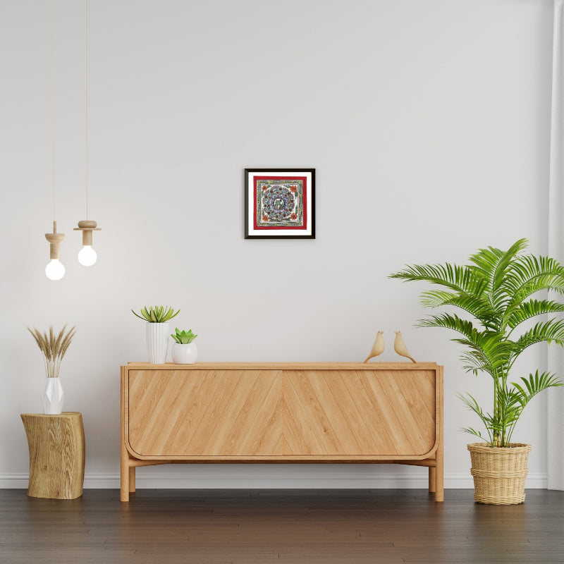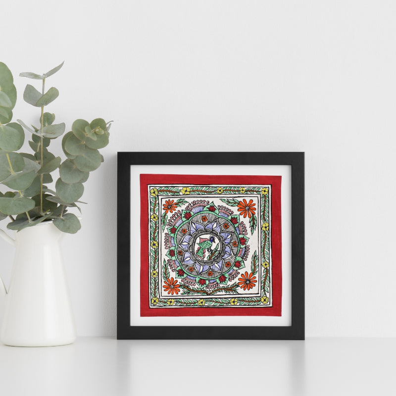 Madhubani Hand Made Painting | Mayur Pushp | 10inch X 10inch with Frame
