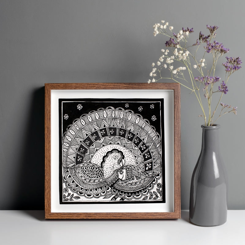 Madhubani Hand Made Painting | Mayur Sanjh | 10inch X 10inch with Frame