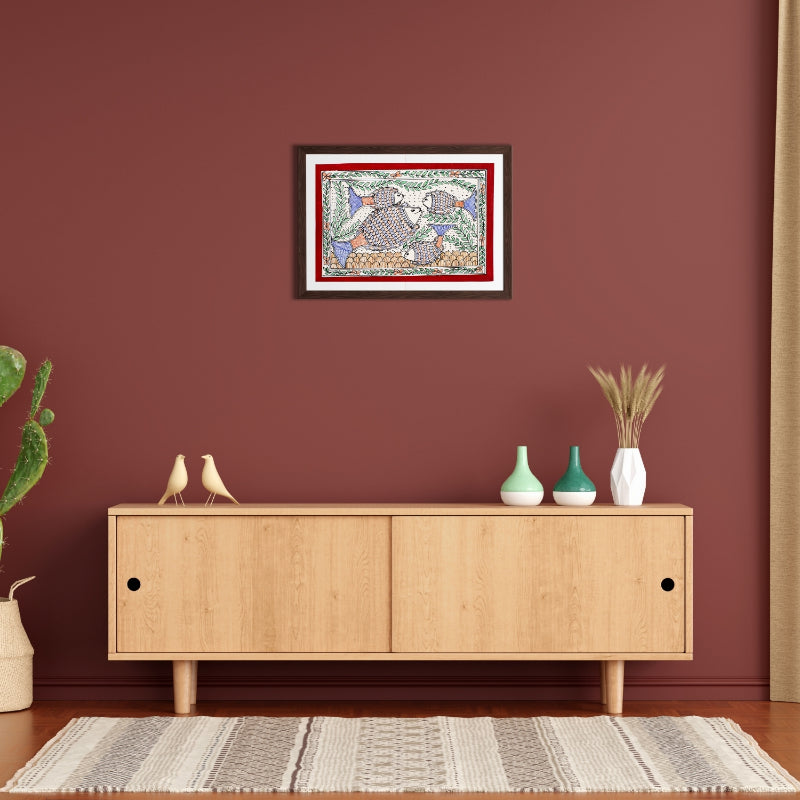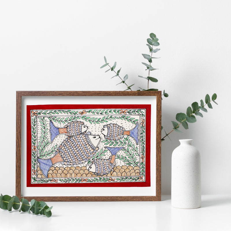 Madhubani Hand Made Painting | Meen Bhogh | 10inch X 13inch with Frame