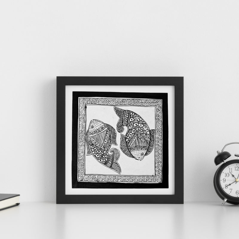 Madhubani Hand Made Painting | Meen Netra | 10inch X 10inch with Frame